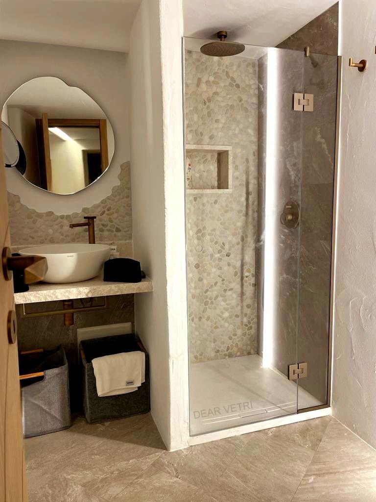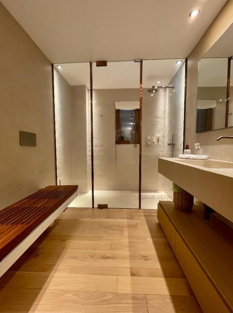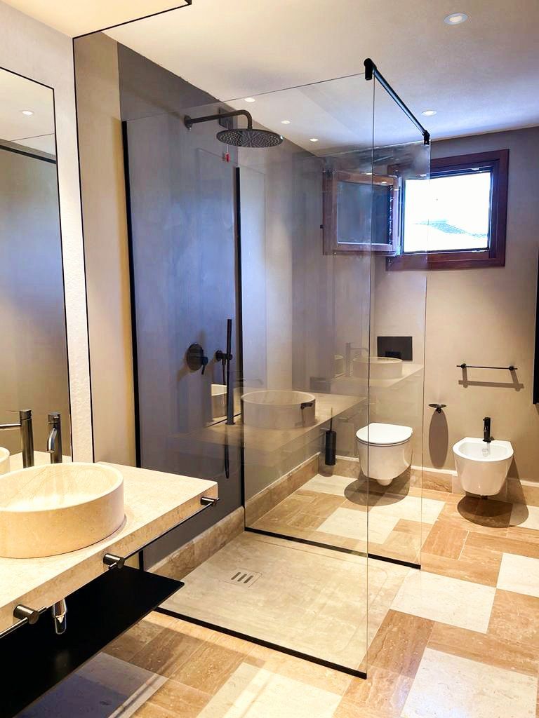 - Eleganza e continuità visiva: i box doccia in vetro donano un tocco di eleganza al bagno, permettendo alla luce di fluire creando un ambiente arioso e moderno.