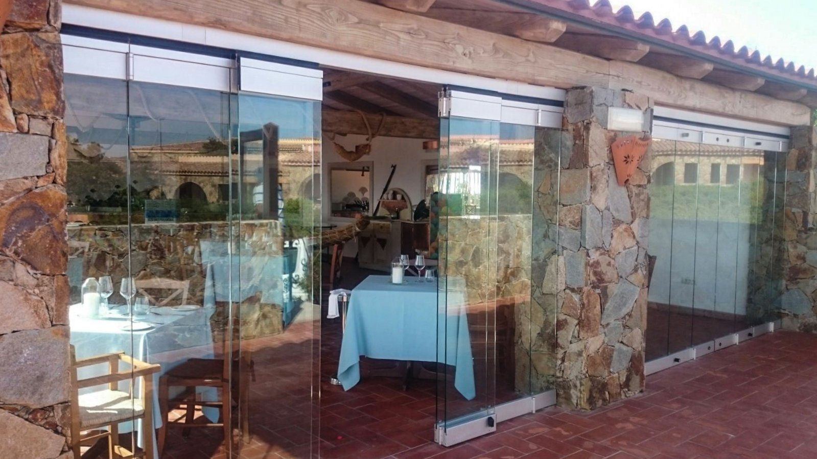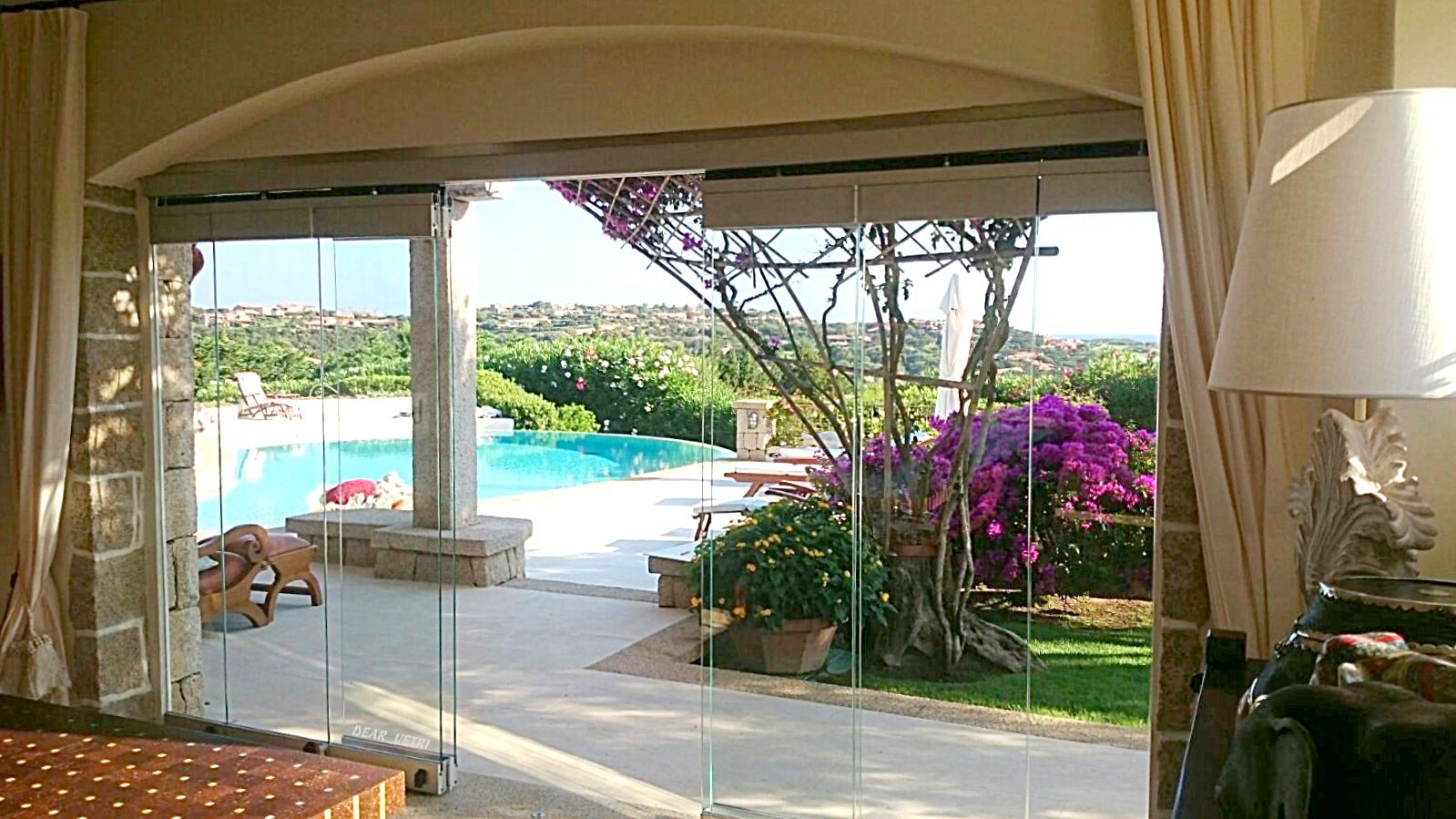 A sistema chiuso si ha la percezione di una vetrata continua che divide l’ambiente interno da quello esterno, a sistema aperto lo spazio si modula in una nuova dimensione permettendo anche una continuità fisica con l’esterno.